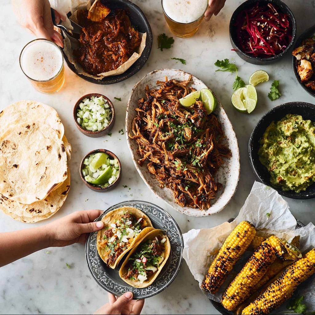 - Protein and Side Selection: Choose one or two proteins such as Pork Carnitas, Mexican Shredded Chicken, or Fish Tacos, and select sides from the list including grilled corn, refried beans, and homemade tortilla chips. Use linked recipes for detailed cooking except for tortilla chips and grilled corn which are prepared as described below.