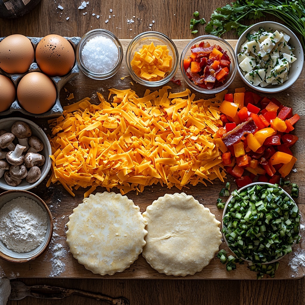 These ingredients are refreshingly straightforward but crucial for crafting the perfect texture and taste in your mini quiches. Each component plays a vital role, from the flakiness of the pie crust to the rich creaminess of the egg mixture and the flavorful punch of your chosen add-ins.