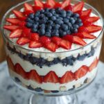 This No-Bake Strawberry Blueberry Trifle is a delightful layered dessert featuring airy angel food cake, fresh strawberries and blueberries soaked in a sweetened lemon-water mixture, and a luscious cream cheese and whipped cream filling. Perfect for summer gatherings, this easy-to-prepare trifle requires no baking and comes together in just 30 minutes, offering a refreshing and visually stunning treat that serves 12 people.