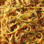 This One-Pot Creamy Beef & Garlic Butter Pasta is a delicious and comforting meal perfect for busy weeknights. Ground beef is browned and combined with garlic, onions, and a creamy Parmesan sauce, all cooked together with pasta in one pot for easy cleanup and rich flavor.