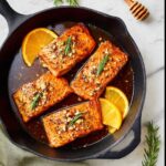 This Orange Glazed Salmon recipe features tender salmon fillets cooked to perfection in a flavorful, tangy orange glaze. Combining fresh orange juice, honey, garlic, and rosemary, this skillet-cooked dish offers a balance of sweetness and savory notes, making it a quick and impressive meal for any occasion.
