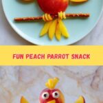 Create a fun and healthy Peachy Parrot Fruit Snack that is perfect for kids and fruit lovers alike. This easy no-cook recipe uses fresh peaches, marshmallow, chocolate chips, and a pretzel stick to assemble an adorable parrot-shaped treat that’s visually appealing and delicious.