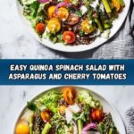 A vibrant and nutritious Quinoa Spinach Salad with tender asparagus, fresh baby spinach, cherry tomatoes, and a tangy balsamic dressing. This wholesome salad combines protein-rich quinoa with crisp vegetables for a light yet satisfying meal or side dish, perfect for healthy eating any time of year.