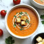 If you’re hosting, serve this Roasted Red Pepper Tomato Soup Recipe in small cups or mini bowls as a starter to wow your guests. For a fun twist, try topping the soup with toasted pine nuts or a sprinkle of smoked paprika for an extra layer of flavor and eye-catching color.