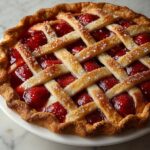 This Rustic Sweet Baked Strawberry Pie features a flaky, buttery crust enveloping a luscious, fresh strawberry filling. Perfect for showcasing the natural sweetness of strawberries, this pie combines a delicate balance of sugar, lemon, and vanilla for an irresistible homemade dessert.