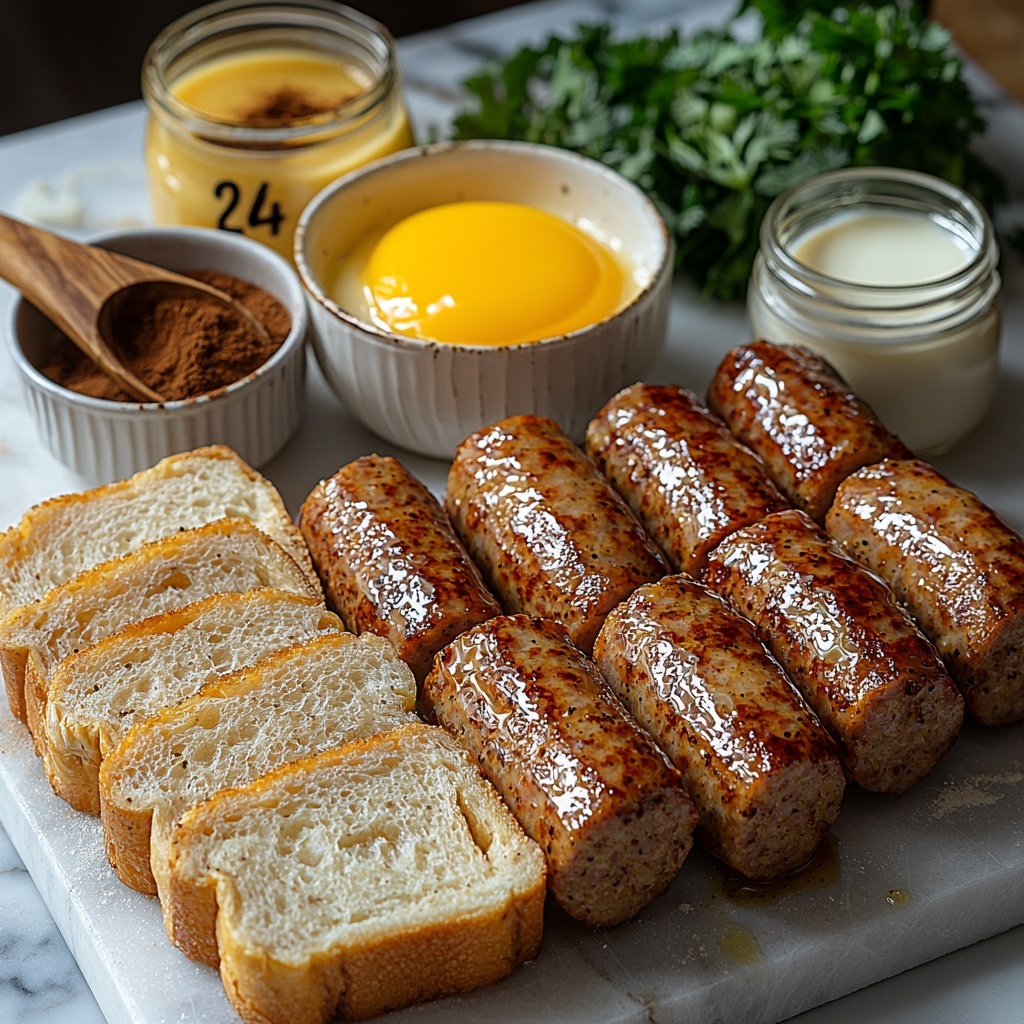 Gathering just a few simple ingredients is all you need to whip up this delightful dish. Each component plays its part, from the fluffy bread providing the perfect wrapper to the sausage links delivering a hearty, savory bite, while the egg mixture adds richness and a touch of sweet spice.