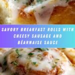 These Savory Breakfast Rolls are fluffy, yeast-risen rolls filled with a delicious mixture of scrambled eggs, breakfast sausage or bacon, cheddar cheese, and green onions. Baked to golden perfection and generously drizzled with homemade Béarnaise sauce, they offer a luxurious breakfast experience that combines comfort and elegance in every bite.