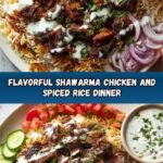 This Shawarma Chicken and Rice recipe features tender, marinated chicken thighs infused with Middle Eastern spices, served over fragrant, spiced basmati rice, and complemented by a tangy garlic yogurt sauce. Perfectly balanced with fresh cucumber, tomato, and herbs, this dish offers a delicious, aromatic meal that brings the authentic flavors of shawarma to your table using stovetop or oven cooking methods.