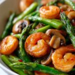 A quick and healthy Shrimp and Asparagus Stir-Fry with Mushrooms recipe that combines fresh vegetables and succulent shrimp in a savory garlic-ginger soy sauce. Perfect for a light dinner or lunch, this stir-fry is easy to prepare and packed with flavor and nutrients.