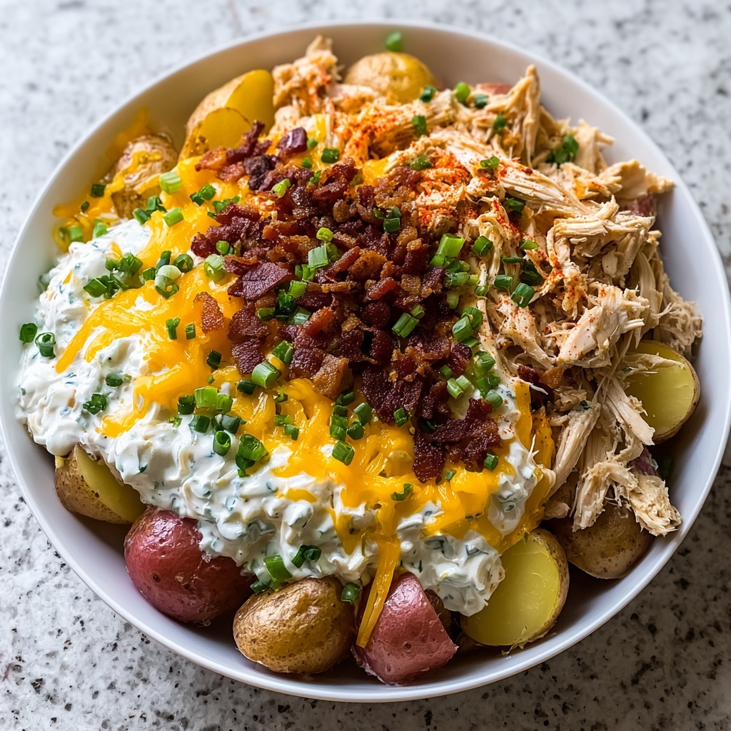 This Slow Cooker Loaded Chicken and Potato Casserole is a hearty and comforting meal featuring layers of seasoned red potatoes, tender chicken breast, crispy bacon, and a blend of cheddar and mozzarella cheeses. Slow-cooked to perfection, it delivers a rich, flavorful dish that’s easy to prepare and perfect for family dinners or meal prep.