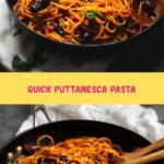 To reheat, warm the pasta in a skillet over low heat with a splash of water or olive oil to loosen the sauce. Stir gently until heated through but be careful not to overcook — Spaghetti alla Puttanesca is at its finest fresh, but reheating is a great option for busy days.