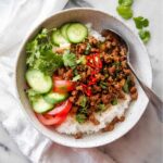 This dish shines alongside traditional jasmine rice, which soaks up the delicious sauce perfectly. For a low-carb twist, cauliflower rice works wonderfully. If you want to add veggies, a light Thai cucumber salad with vinegar and peanuts or quick-pickled carrots offer refreshing contrasts in texture and temperature.