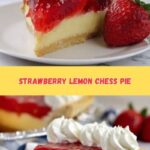 This Strawberry Lemon Chess Pie is a delightful combination of tangy lemon and sweet strawberries baked into a classic chess pie custard. Featuring a buttery deep dish pie crust filled with a lemony, sweet custard topped with luscious strawberry pie filling and finished with whipped cream, this dessert is perfect for brightening any occasion with its fresh flavors and smooth texture.