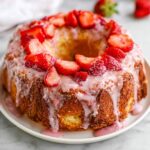 This Strawberry Pound Cake is a moist and flavorful dessert featuring a tender crumb infused with fresh strawberries and a luscious homemade strawberry glaze. Baked in a Bundt pan, the cake is soaked with a sweet strawberry syrup, enhancing its fruity flavor for a perfect balance of sweetness and freshness.