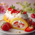 This Strawberry Shortcake Roll is a light and fluffy rolled sponge cake filled with fresh strawberries and sweetened whipped cream. Perfect for a refreshing dessert, it combines a tender vanilla sponge with juicy berries and creamy filling, all dusted with powdered sugar for a beautiful finish.