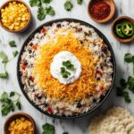 Crowd your Taco Rice Recipe with garnishes like sour cream and sliced black olives. These final toppings add creaminess and a bit of briny zing that make every forkful exciting.