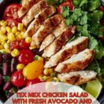 This vibrant Tex-Mex Chopped Chicken Salad is a fresh and flavorful combination of protein-packed chicken breast, crunchy Romaine lettuce, mixed greens, and colorful veggies like cherry tomatoes, red bell pepper, and corn. Tossed with a zesty chili-lime dressing and topped with shredded cheddar and creamy avocado, it’s a perfect no-cook, healthy meal that’s quick to prepare and bursting with southwestern flavors.