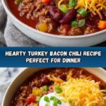 • 1 pound turkey bacon (chopped): Adds a wonderful smoky flavor and crisp texture that enhances the chili’s depth.