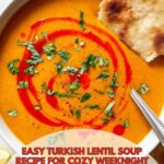 Ladle the hot soup into bowls, serve with lemon wedges on the side for squeezing, and if you like, sprinkle chopped parsley and drizzle over some of that gorgeous paprika oil. This final presentation step brings color, brightness, and layers of flavor to your Turkish Lentil Soup Recipe that will surely impress.