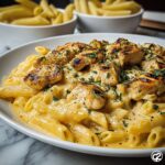 This Velveeta Chicken Penne features tender chicken breasts tossed with penne pasta in a rich, creamy mozzarella garlic cheese sauce made with Velveeta and heavy cream. Infused with Italian seasoning and fresh garlic, it’s a comforting and satisfying dinner perfect for cheese lovers seeking indulgent flavors.